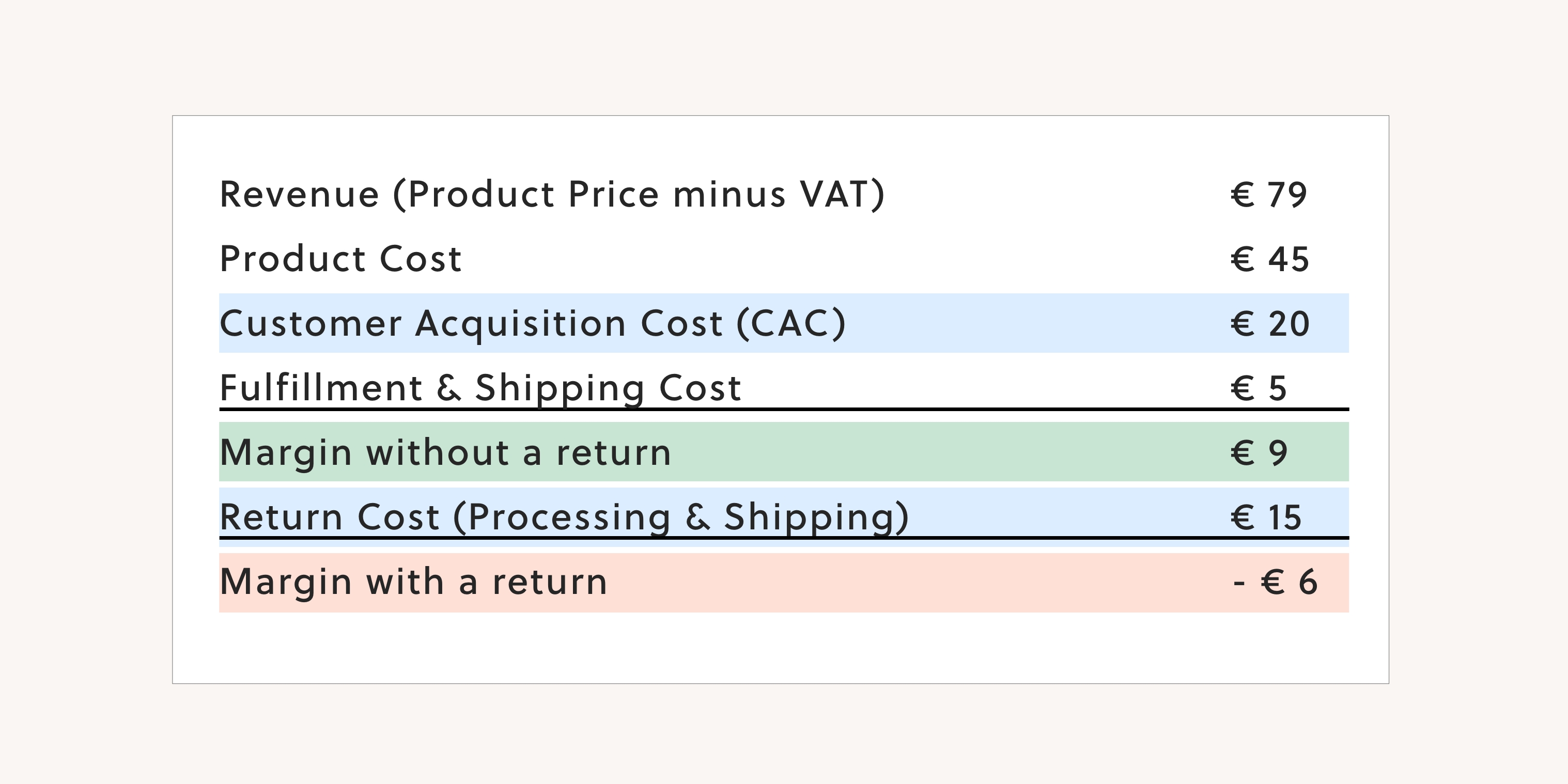 Remember the calculation we showed you before? With a returning customer it will look a lot better. More like this: