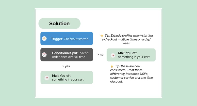 The Abandoned Checkout flow is another arena where personalization can make a significant difference. A common misstep is treating all subscribers uniformly, overlooking the nuance between existing and new consumers.